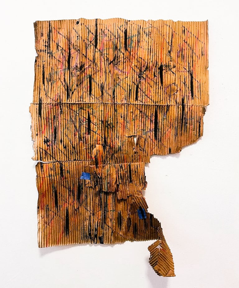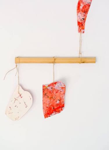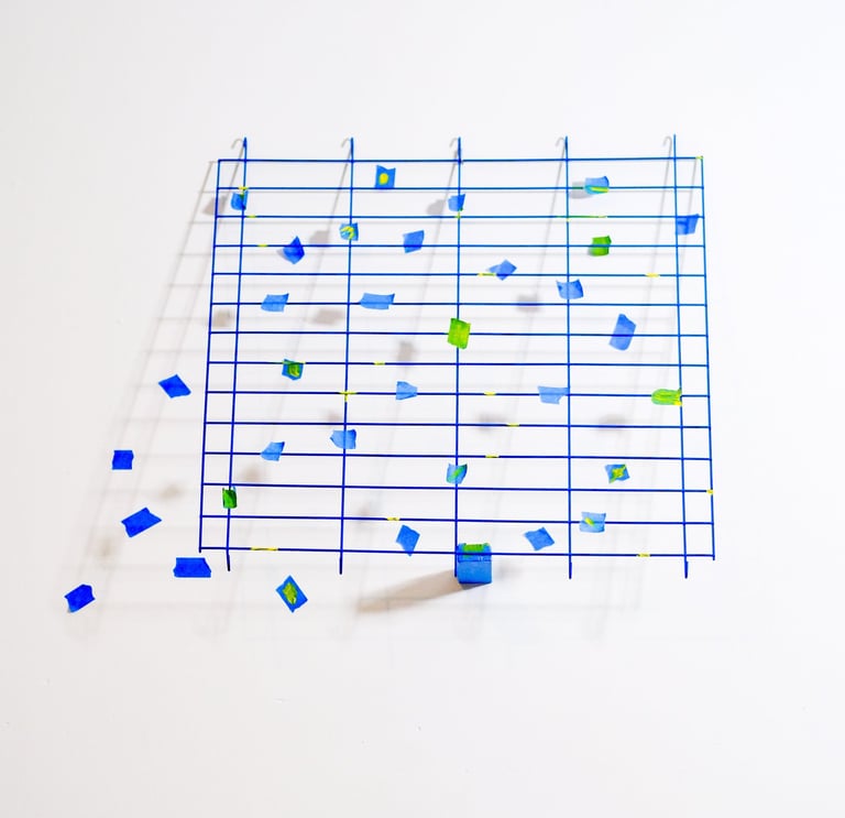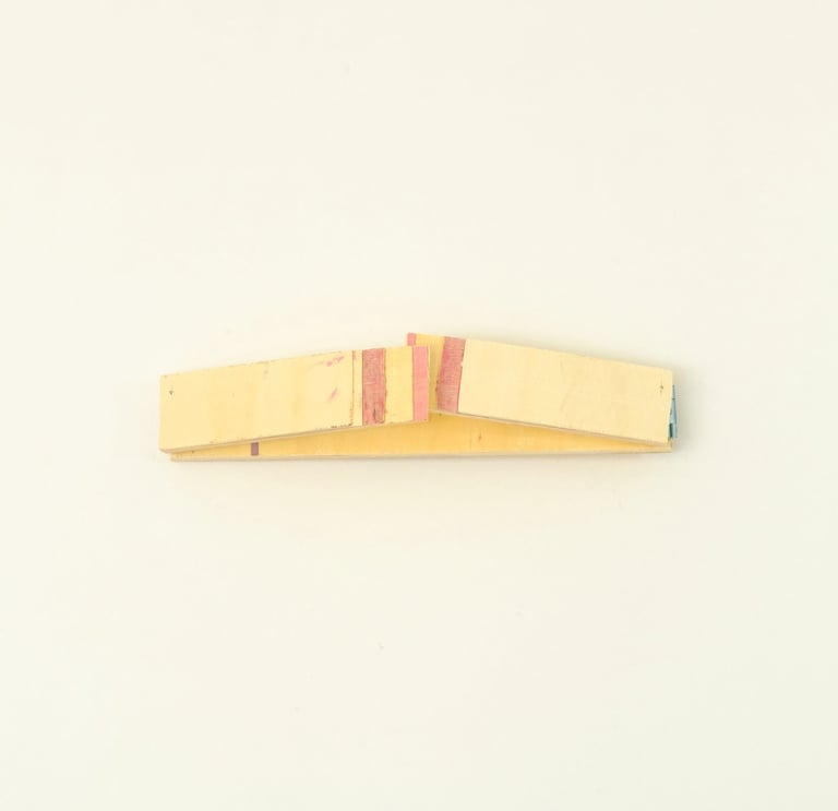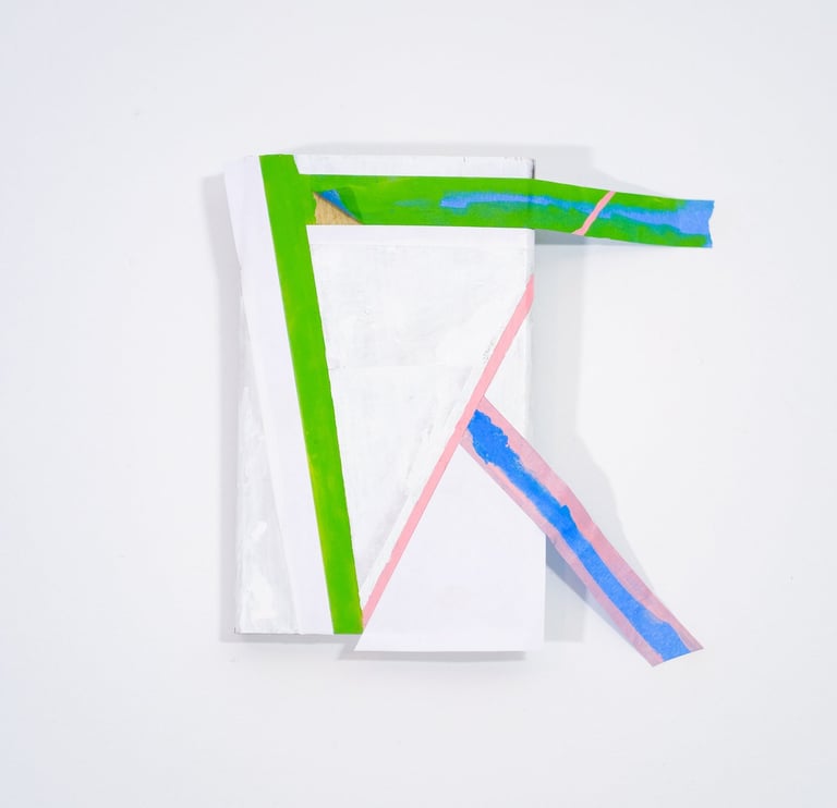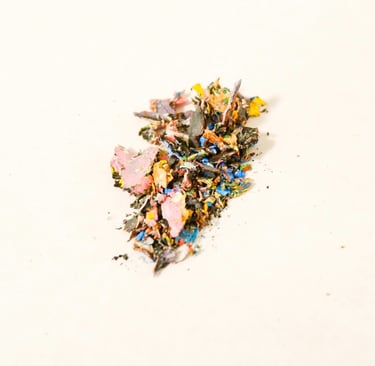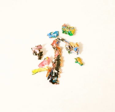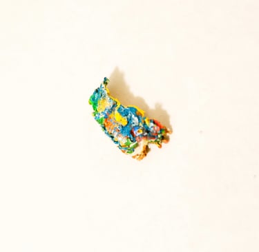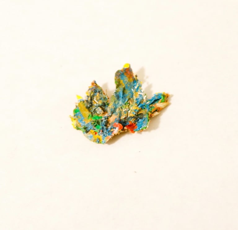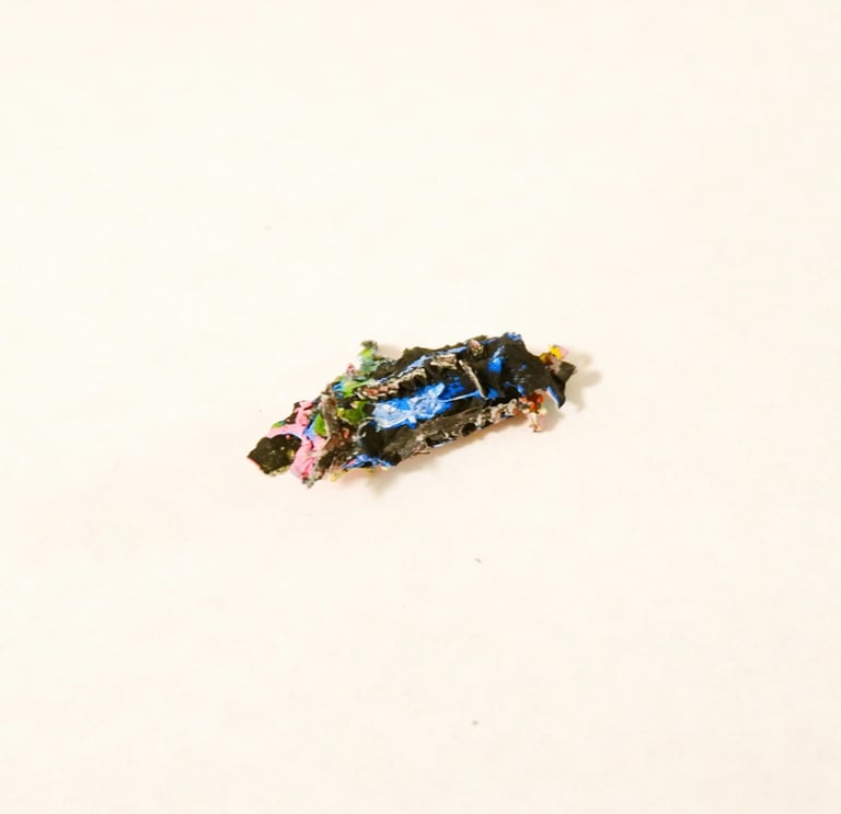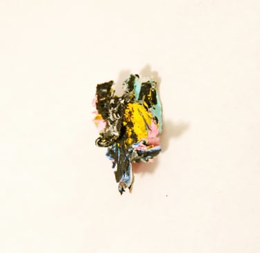These tiny “sculptures” are made entirely of acrylic paint, scrapped from the base of a mixing palette. The residue of a process.